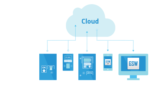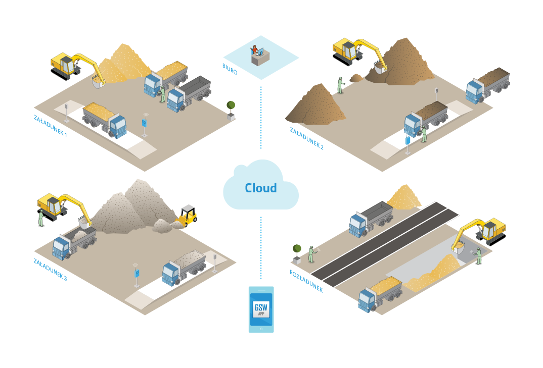 Alle Daten von Lesegeräten, die an Ein- und Ausfahrtswaagen montiert sind, sowie von Terminals oder Anwendungen an Entladestellen, werden an eine zentrale Datenbank in der sogenannten "Cloud" übermittelt.