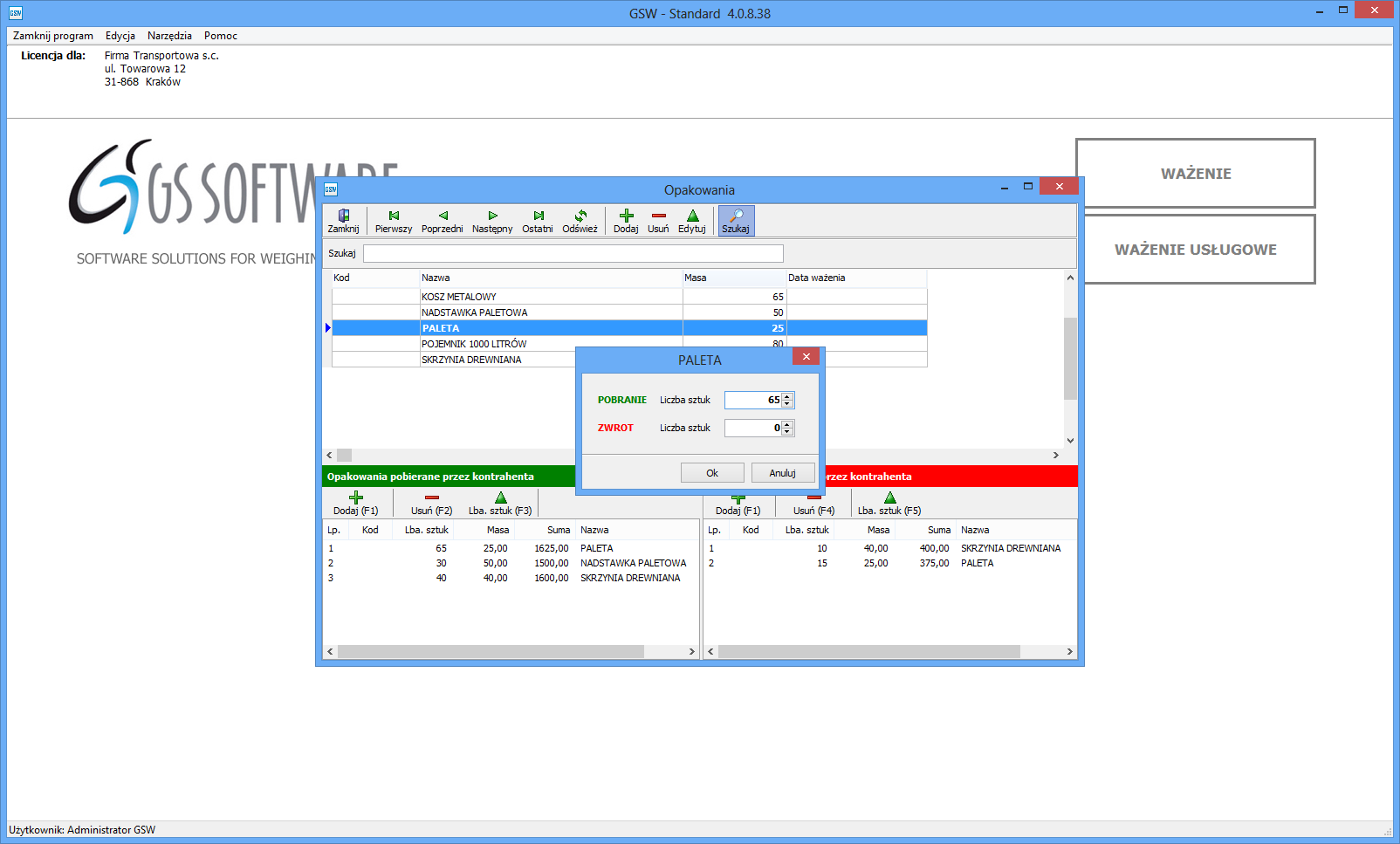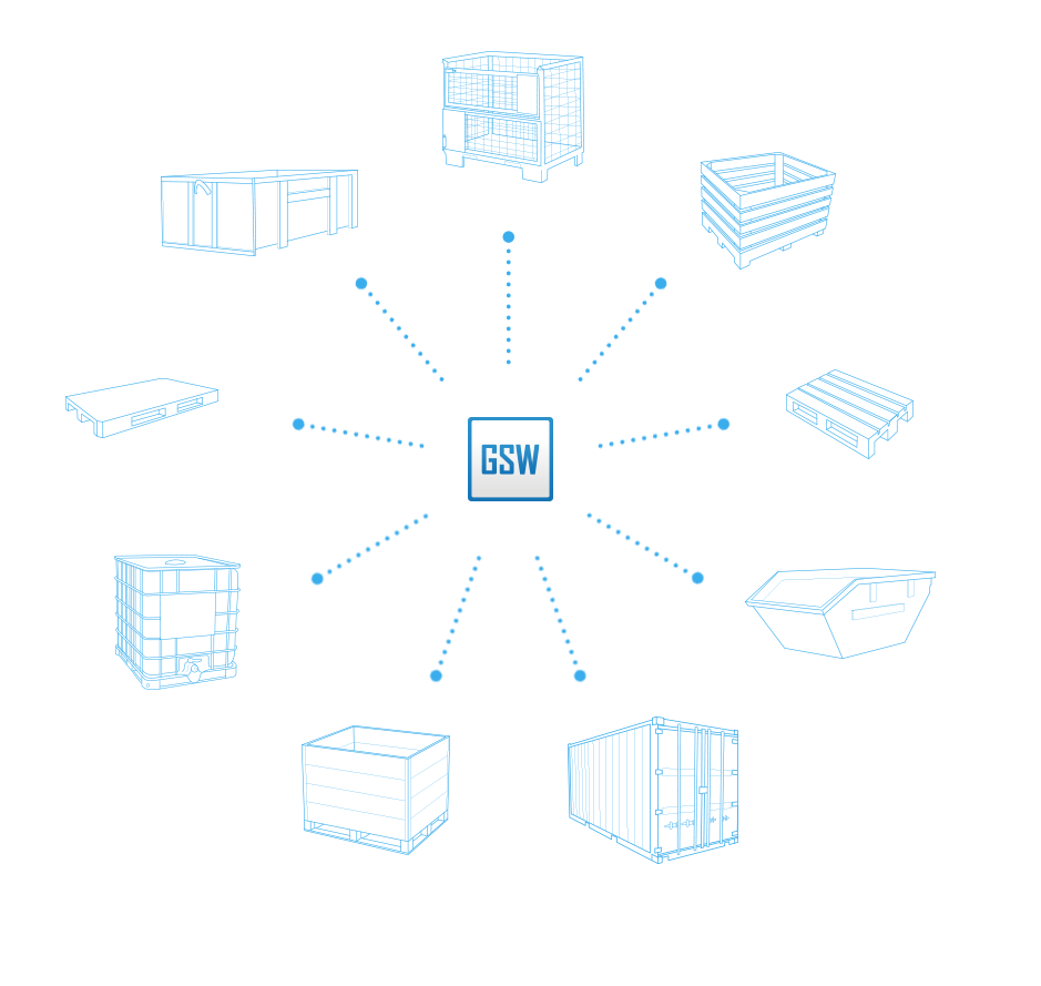 Im GSW-Programm kann die Art der erhaltenen / ausgegebenen Verpackungen abhängig vom Geschäftsprofil des Unternehmen bestimmt werden. Es kann sich dabei u. a. um Palleten, Holzkisten, Stahlkörbe, Palettenaufsatzwände, Kunststoffverpackungen oder Container handeln. Jeder der beliebig definierten Verpackungen kann entsprechendes Verpackungsgewicht zugeordnet werden.