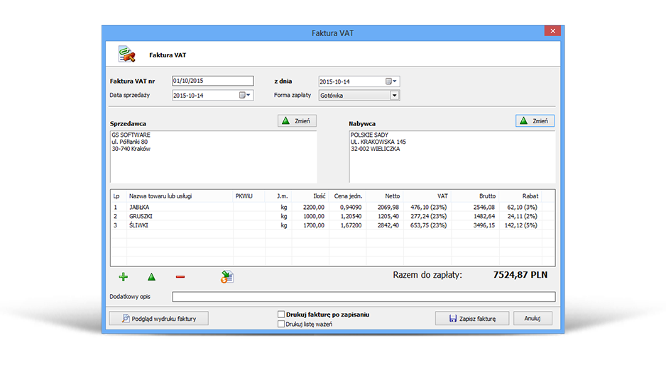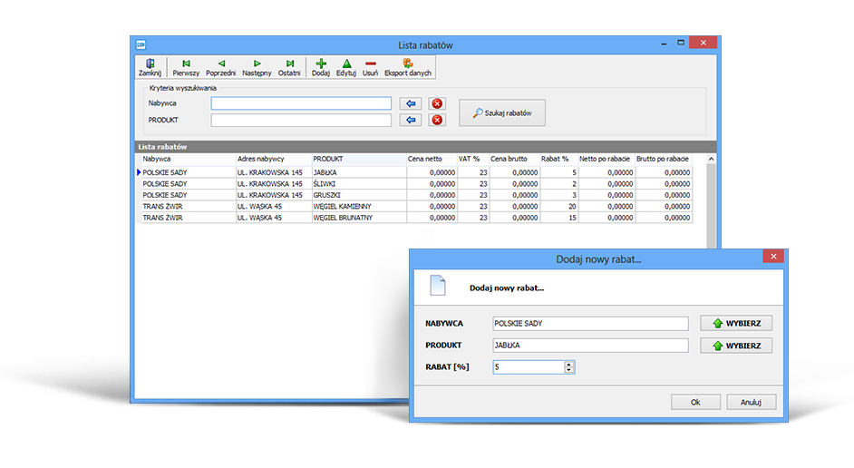 Die Anwendung bietet die Möglichkeit, die Höhe der Rabatte auf einzelne Produkte für einen bestimmten Kunden zu bestimmen.
