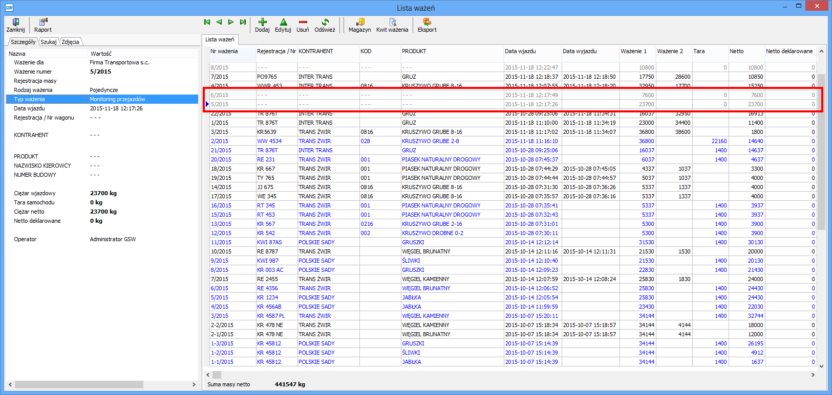 Überwachung des Fahrzeugverkehrs auf der Waage - Softwaremodul |
