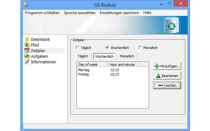 GS Backup funktioniert als eine Dienstleistung (Service) von dem Microsoft Windows System.