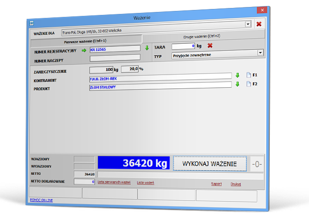 WÄGUNG AUF DER PALETTENWAAGE Diese Funktion erlaubt die Wägungsausführung auf kleinen Waagen (Palettenwaagen) ohne Notwendigkeit, die Kennzeichennummer anzugeben. Die durchgeführte Verwiegung wird eine Einzelwägung. Diese Funktion wird oft in den Unternehmen, die sich mit Umsatz von Stahlschrott beschäftigen, benutzt. |