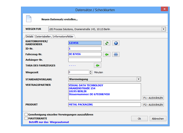 Für die Verwiegungsausführung bei der Standardkonfiguration werden 3 Informationen gebraucht: