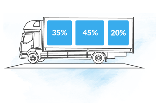Ein Beispiel der Prozenteinteilung im Hinblick auf Gemeindename: Gemeinde A – 20%, Gemeinde B – 30%, Gemeinde C – 50%.