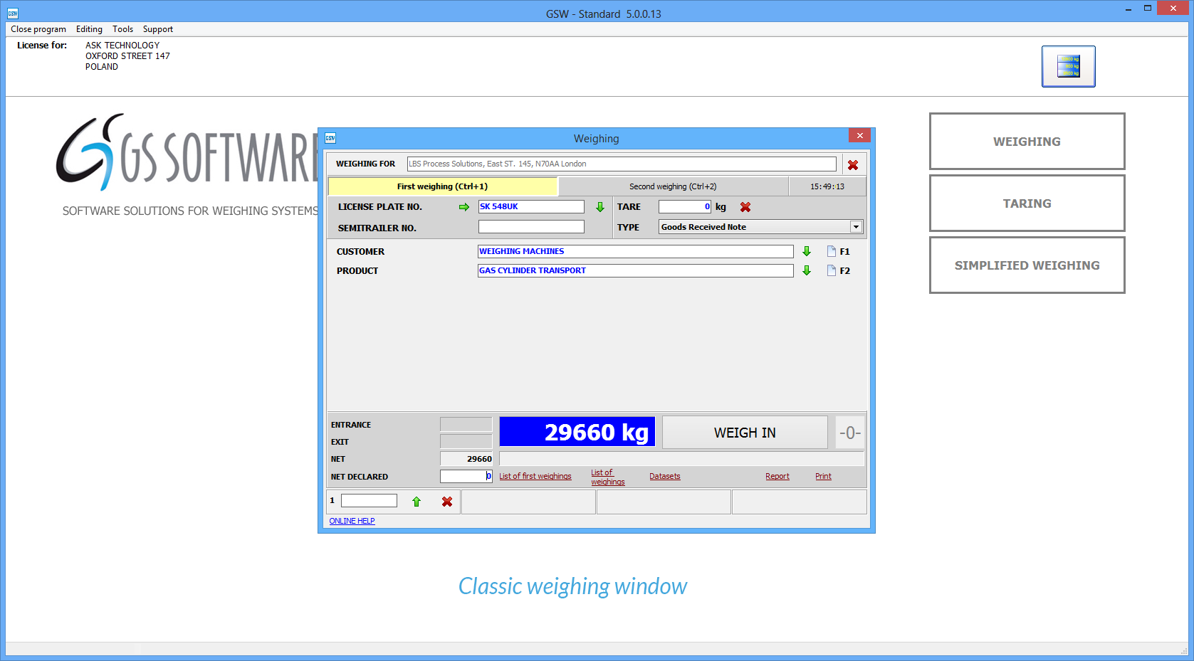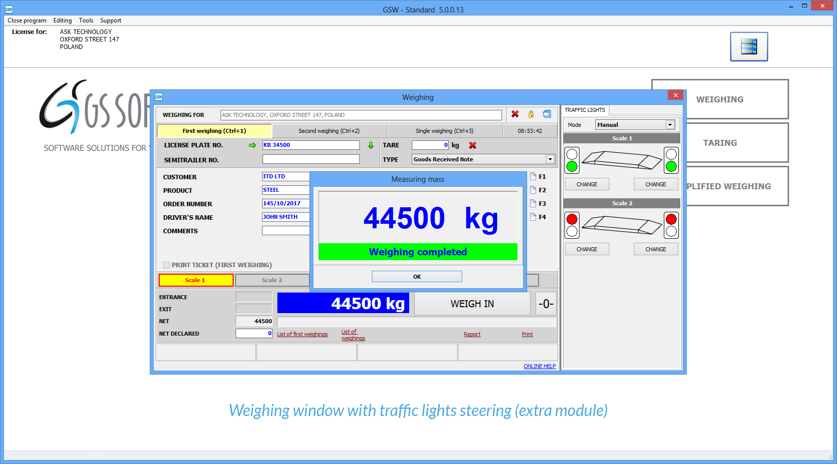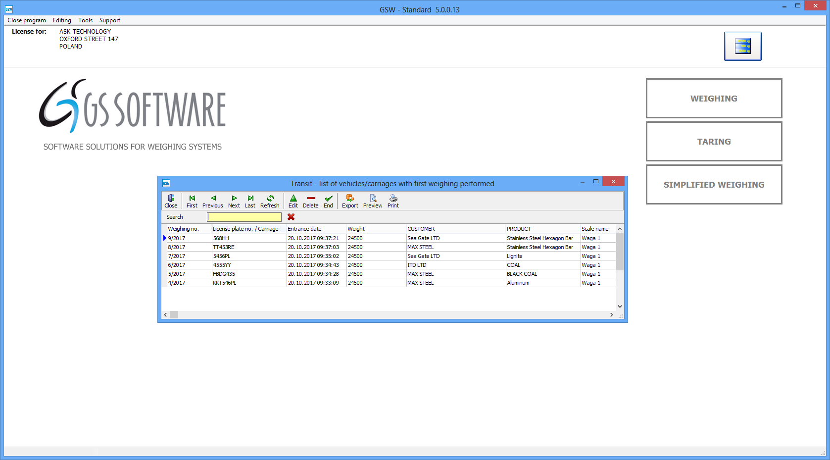 GSW ist eine der besten verfügbaren Softwareanwendungen für die Wägungsausführung auf den Fahrzeug- und Gleiswaagen.