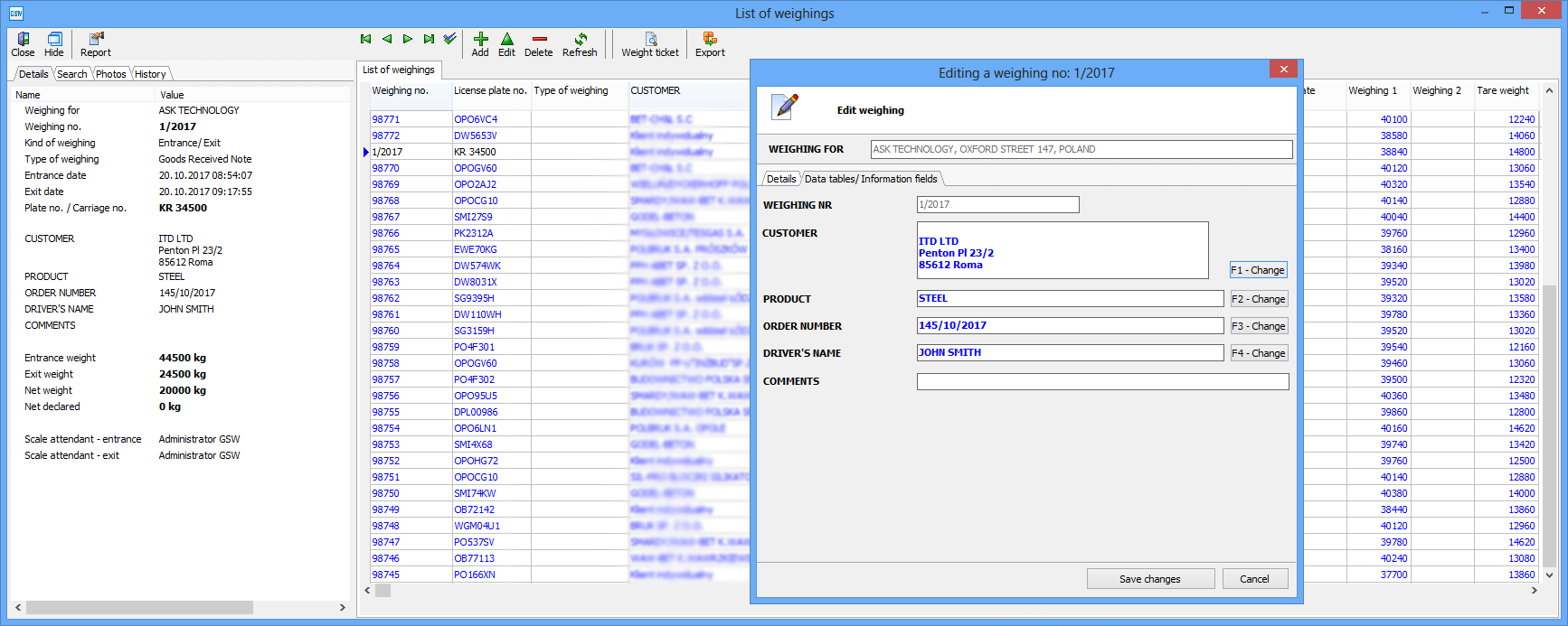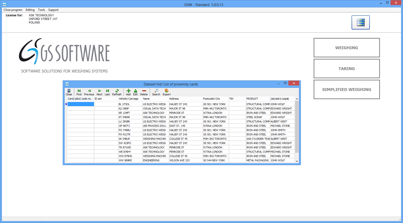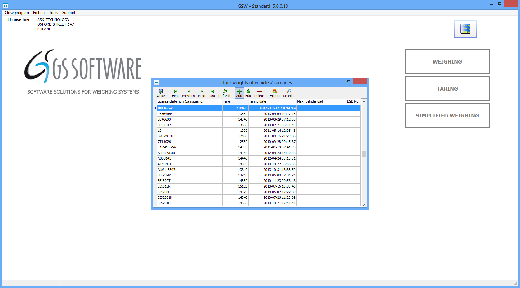 GSW ist eine der besten verfügbaren Softwareanwendungen für die Wägungsausführung auf den Fahrzeug- und Gleiswaagen.