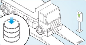 Nach der Verwiegungsstabilisierung erfolgt das Speichern der Wägung in dem Datenbank und erleuchtet die grüne Ampel – das Fahrzeug verlässt die Waage