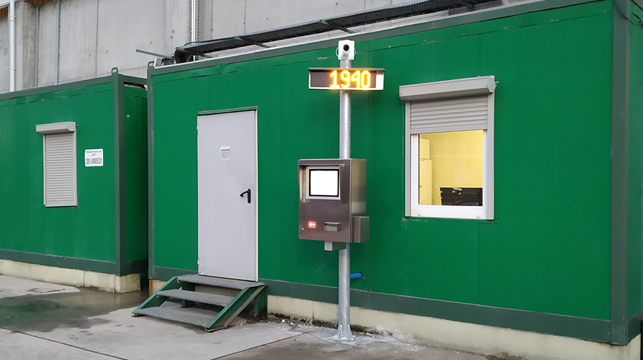 auf dem Terminalbildschirm angezeigt und der Wiegeschein gedruckt. Nach dem Abholen des Wiegescheins fährt das Fahrzeug von der Waage.