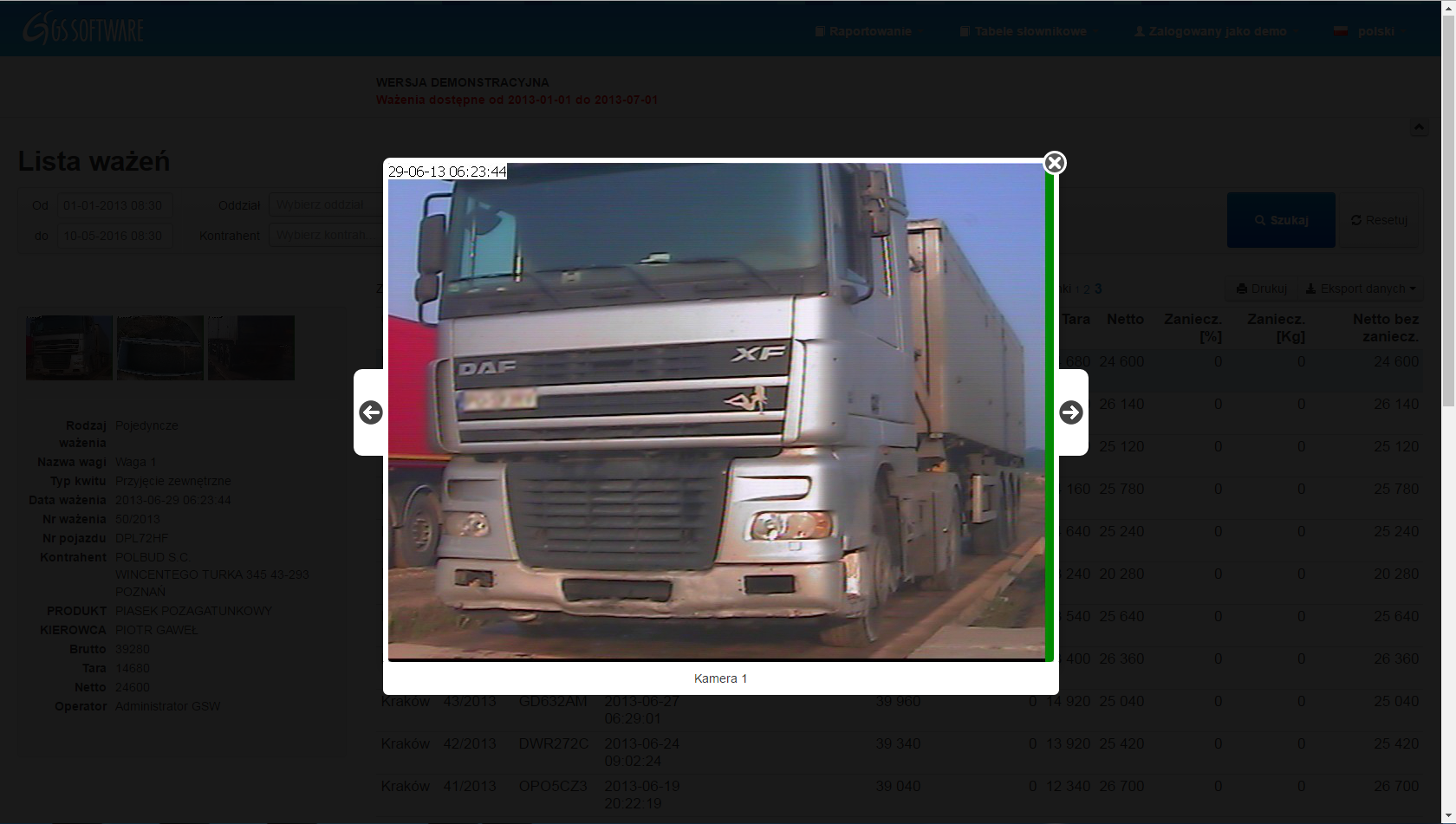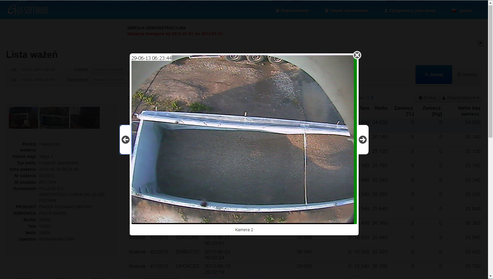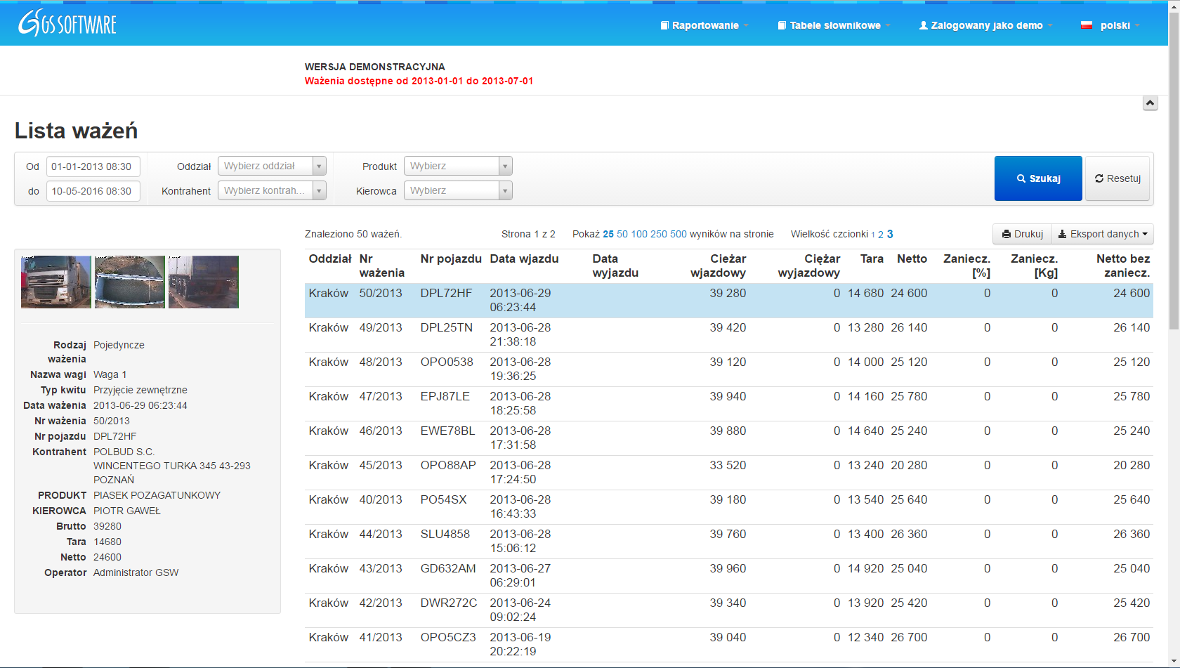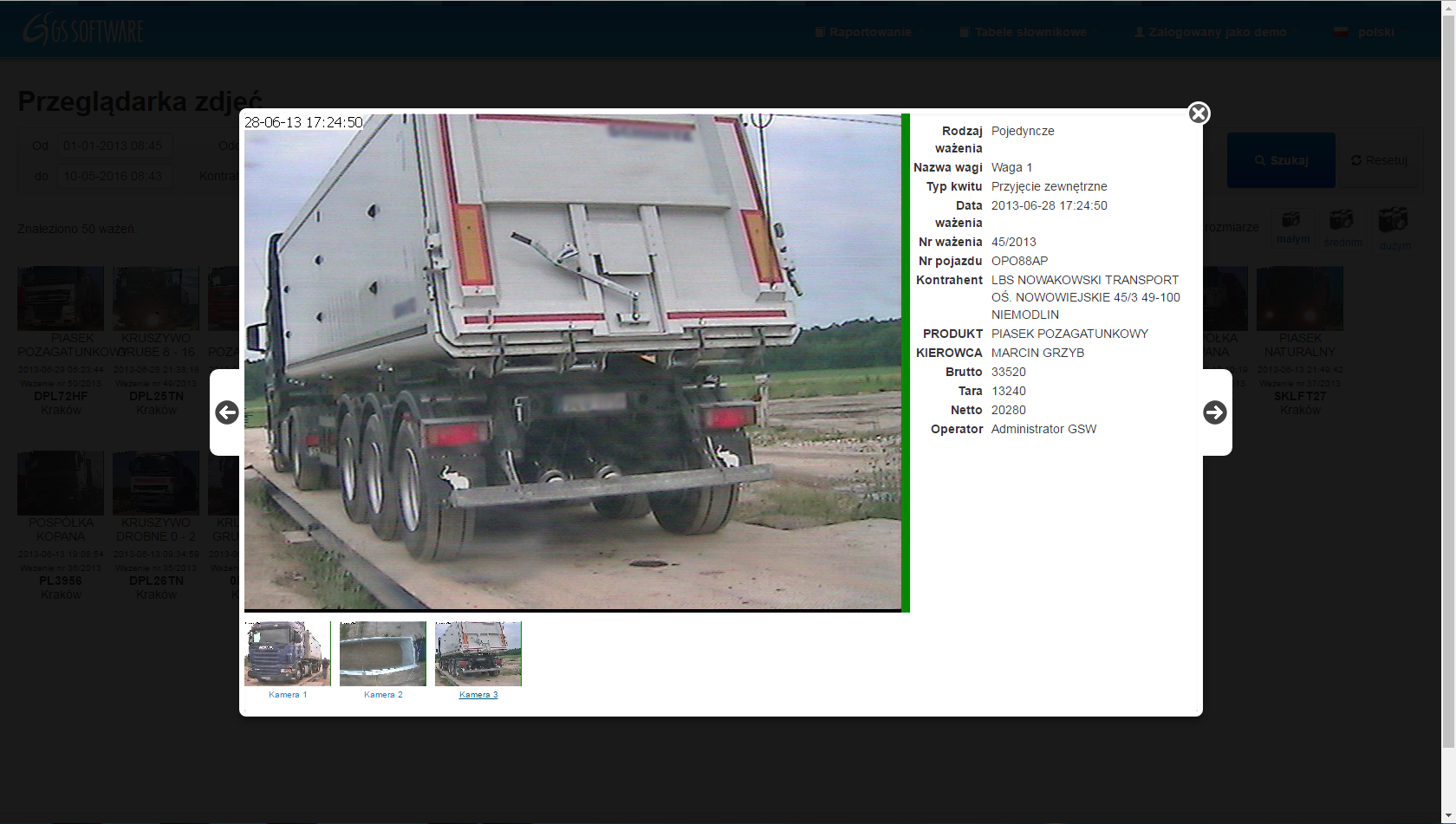 The GSW Standard program has an additional module enabling to synchronize data into the so-called "clouds" (databases on the Internet). In the service, the user receives access to a website that enables to view weighings results, photos and to generate reports.