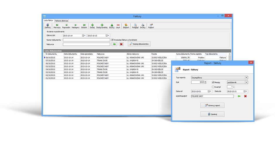 In the GSW program it is possible to generate reports on the basis of issued invoices. It is possible to generate a detailed summary report and a summary report for a given month.