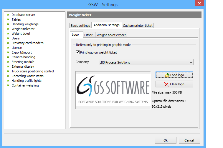 The GSW software is equipped with a graphics editor, which helps users to tailor the look of their weighing tickets to their own needs (e.g. headed paper).