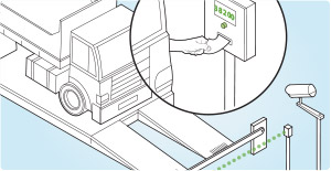 Through side window driver presses button to capture weight. At this moment system begins identifying front license plate and saves measuring data in a database (along with taken photos)