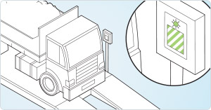 Vehicle enters the scale and driver swipes card in front of RF reader. After positive card verification, the weighing begins.