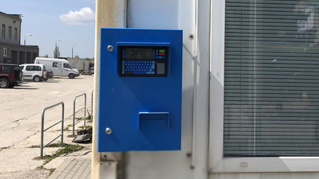 The terminal consists of a metal casing of the following dimensions: 600x400x250 mm, painted in the RAL5015 colour. It is possible to buy the terminal in the stainless steel casing. The customer can extend the basic terminal version by purchasing additional elements of the equipment, such as: the industrial printer with paper cutter or the IP intercom.