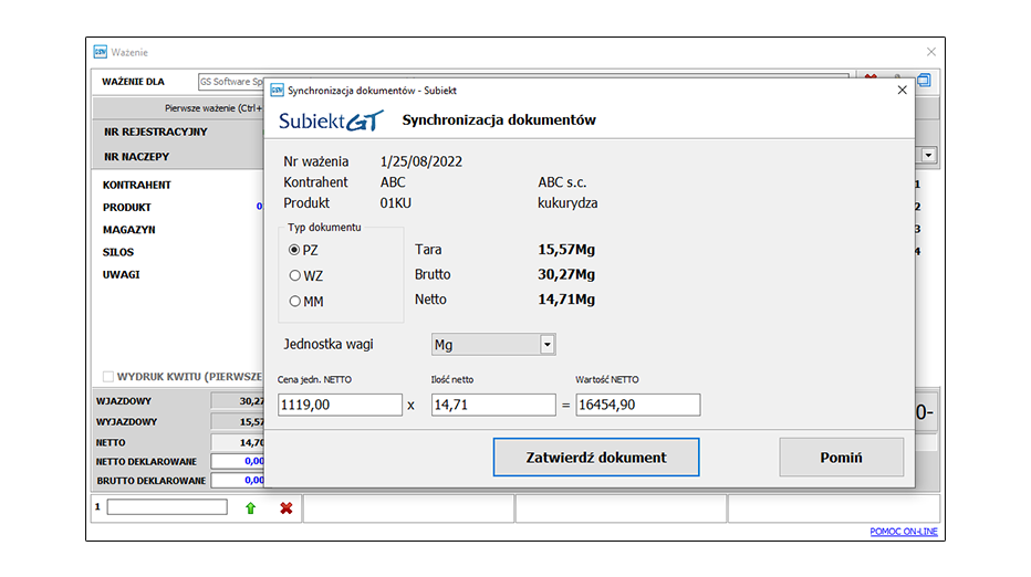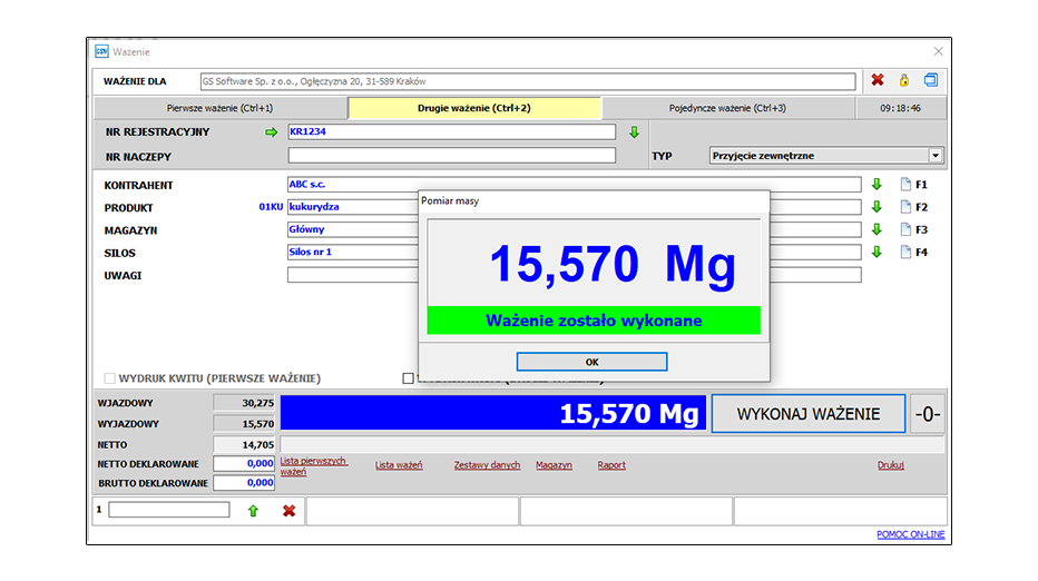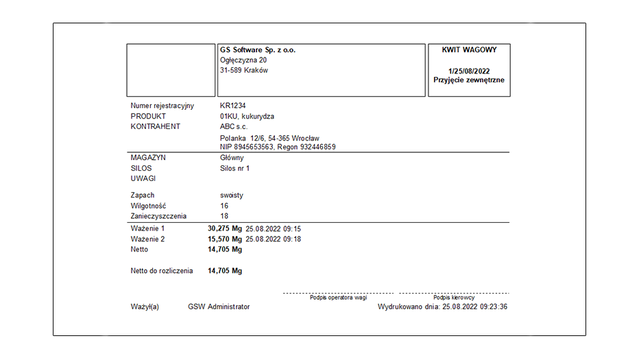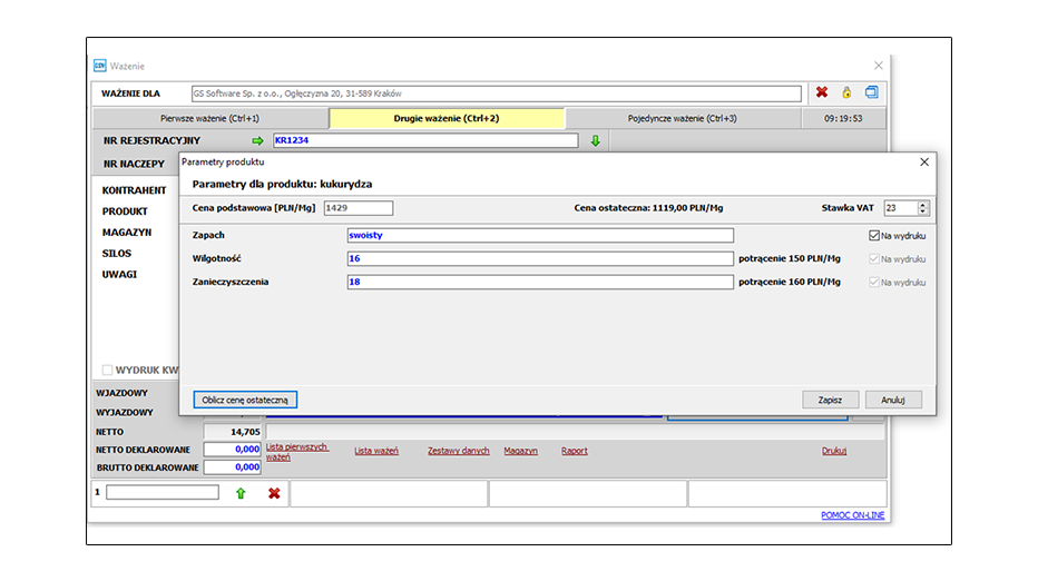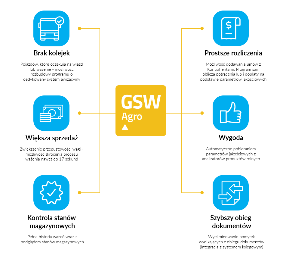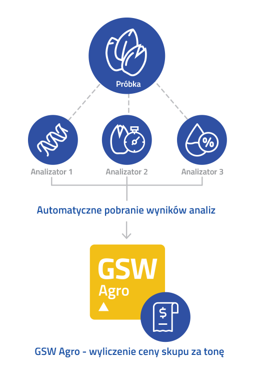 GSW Agro to rozwiązanie które umożliwia między innymi wykonywanie ważeń z automatycznym pobieraniem parametrów jakościowych z analizatorów produktów rolnych.