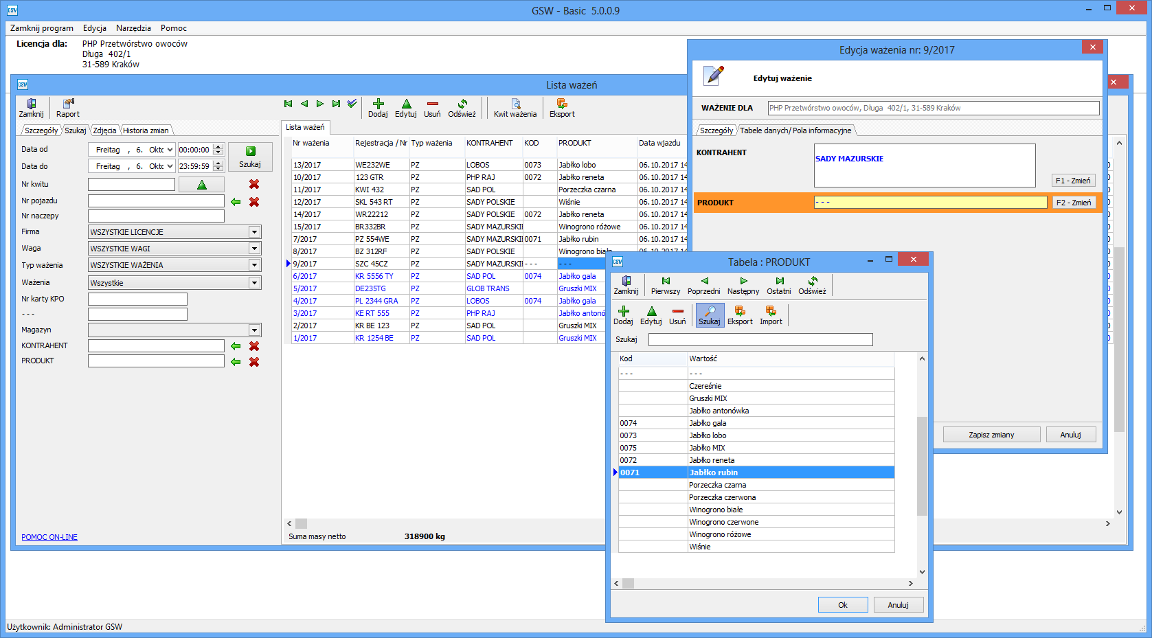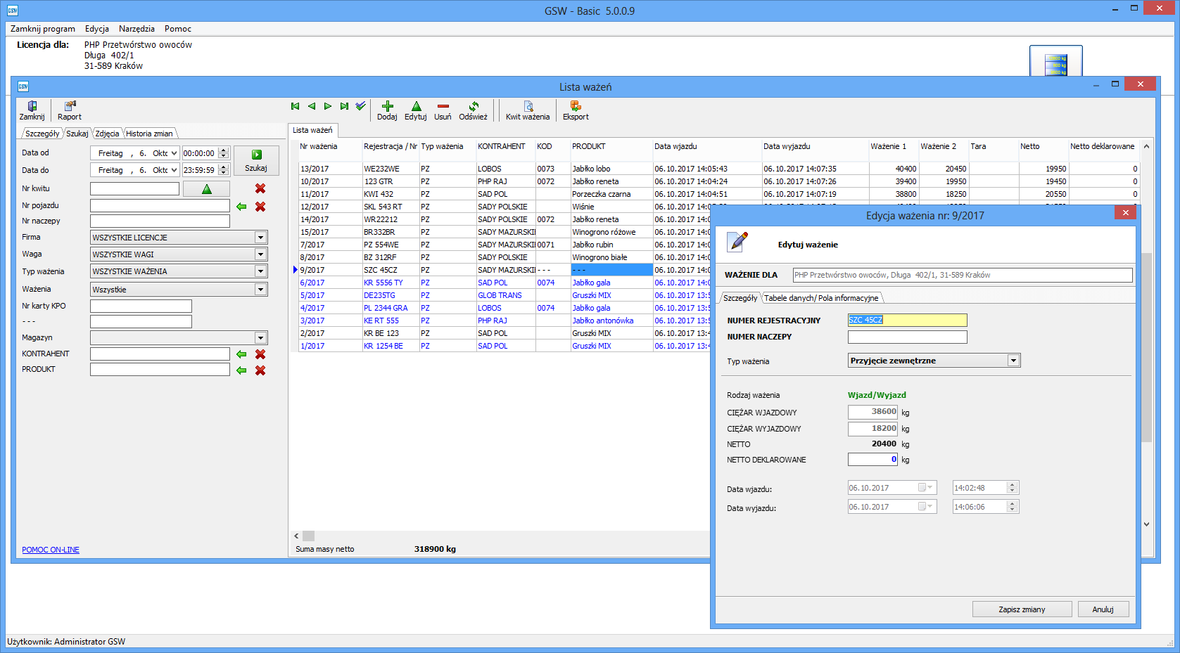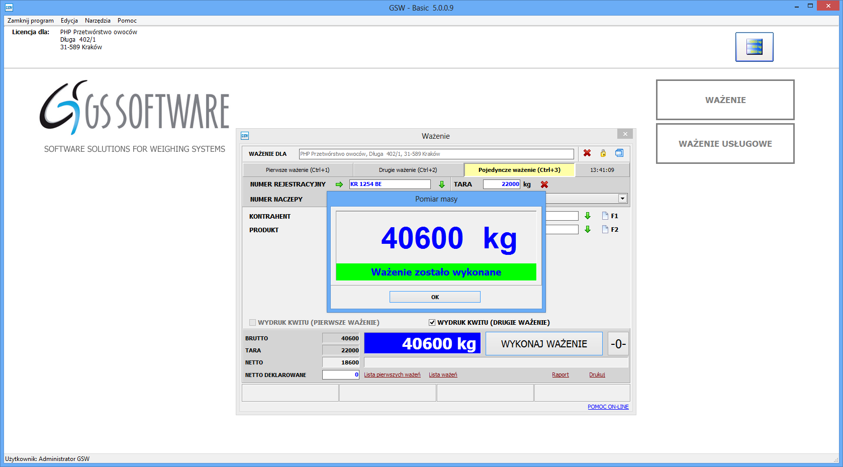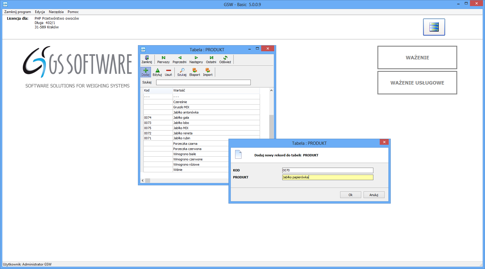 Użytkownicy z kontem administratora posiadają pełny dostęp do wszystkich funkcji programu. Uprawnienia innych użytkowników np. operatorów wag mogą zostać ograniczone.