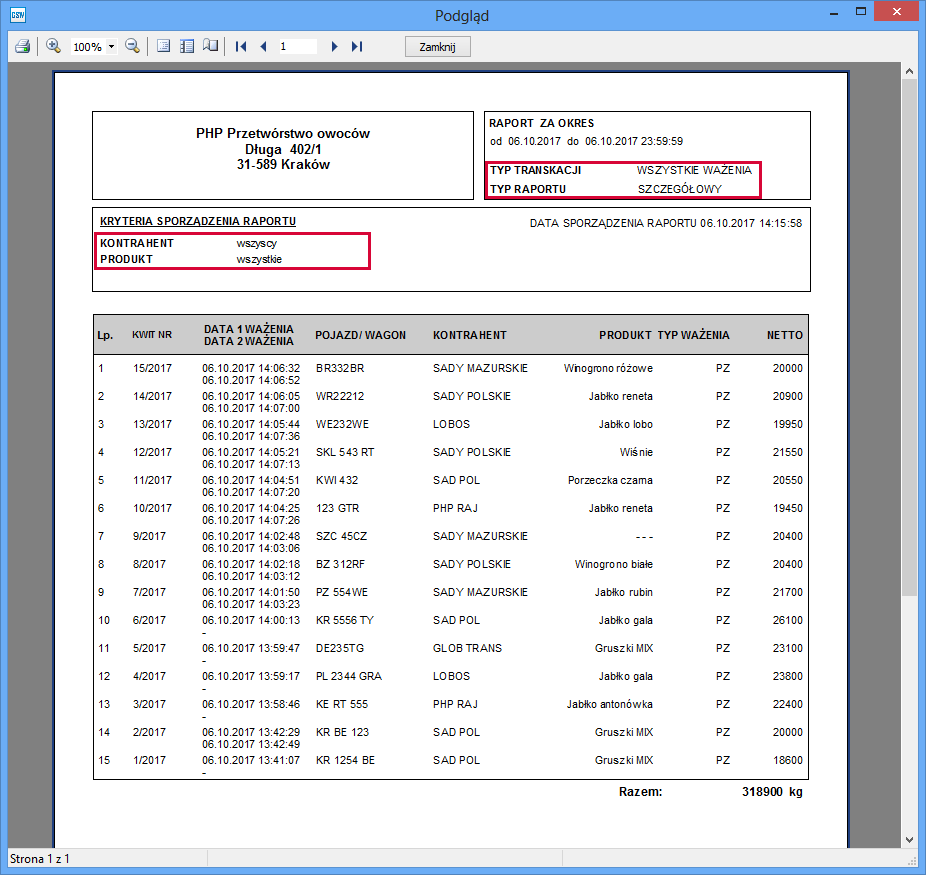 Do wykonania ważenia przy domyślnej konfiguracji programu potrzebne są 3 informacje: