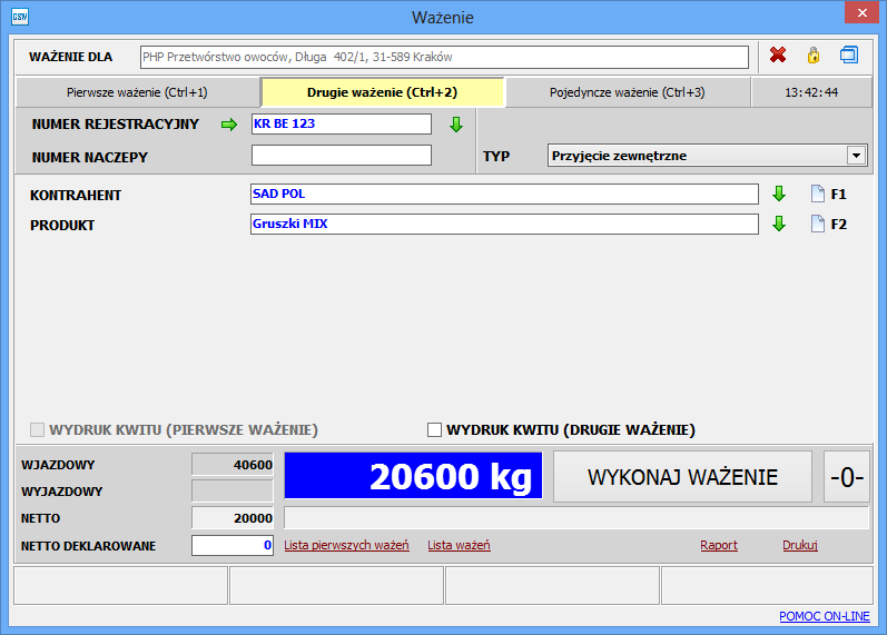 WAŻENIE USŁUGOWE Jest to uproszczony tryb ważenia. Ważenie wykonane w tym trybie nie zostaje zapisane w bazie danych – jedynym potwierdzeniem wykonania ważenia jest wydruk kwitu. |