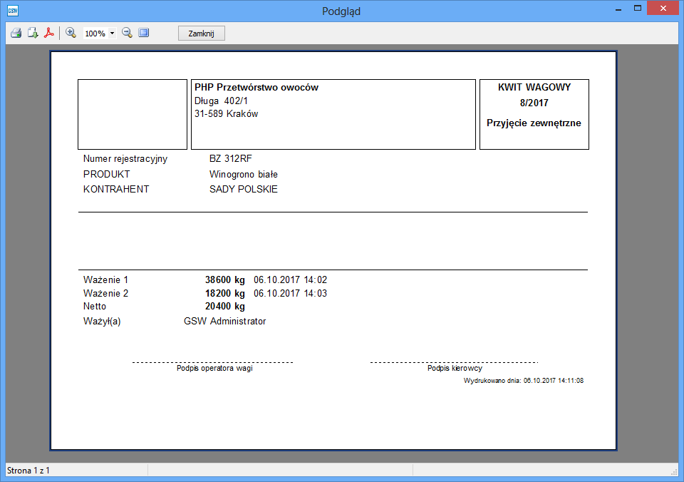 Drukowanie kwitów ważenia NA DRUKARKACH ATRAMENTOWYCH