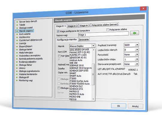 Zobacz listę mierników wagowych obsługiwanych przez program GSW.