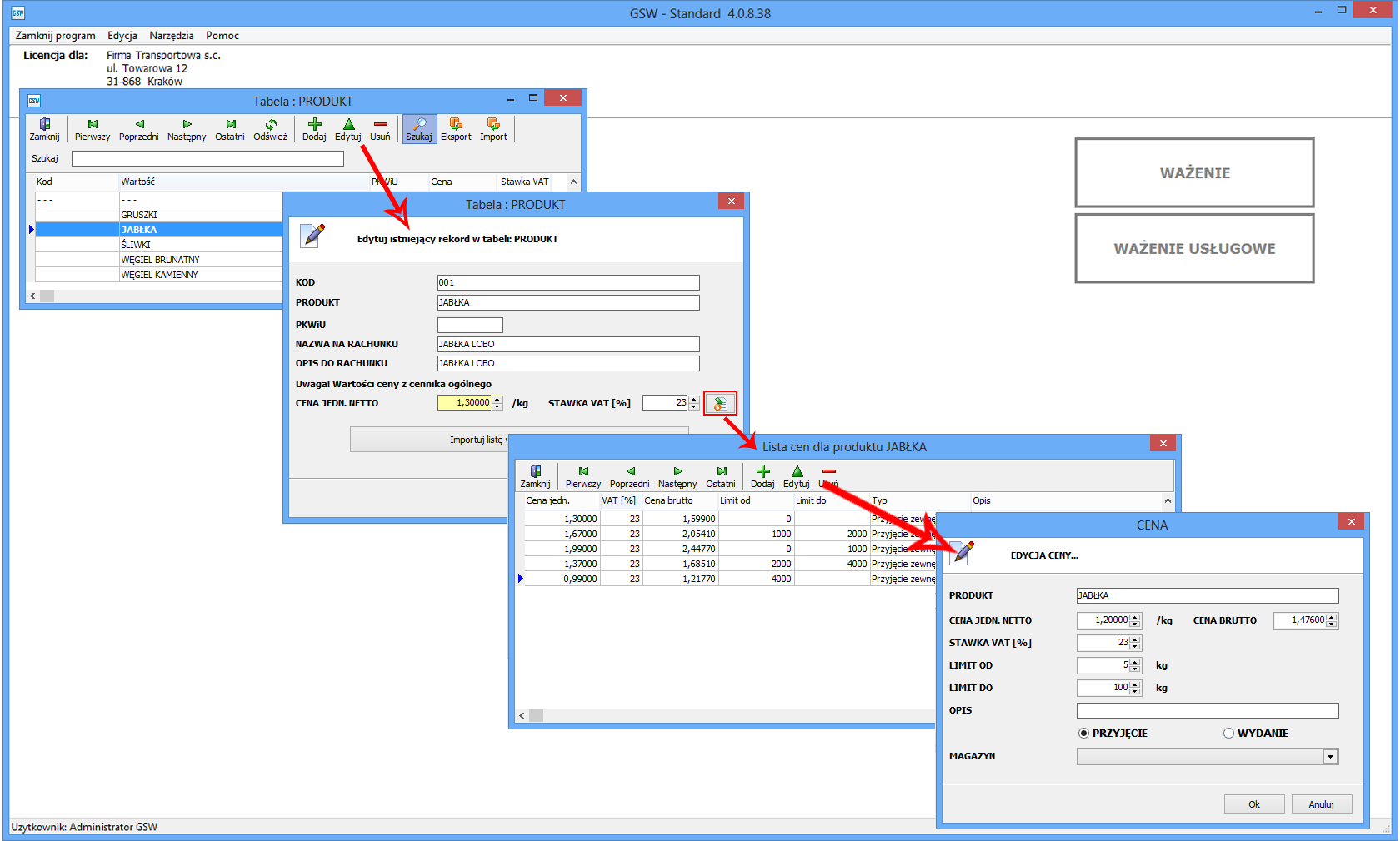 Po wykonanym ważeniu użytkownik ma możliwość zweryfikowanie danych widniejących na fakturze takich jak dane sprzedawcy, nabywcy, może także edytować dane ważonego produktu takie: jednostka miary, ilość, cena jednostkowa, stawka vat czy wysokość rabatu. Użytkownik może również dodać do faktury dodatkowy opis.