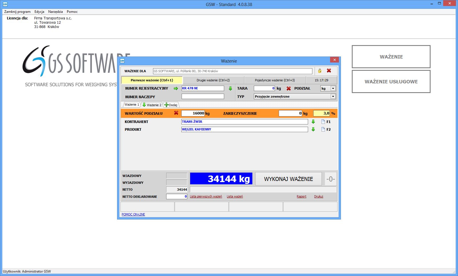 Wykonując ważenie w programie GSW operator ma możliwość wyboru danych importowanych bezpośrednio z programu Subiekt tj. danych kontrahentów, rodzajów produktów, magazynów.