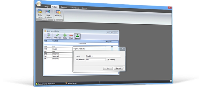 W programie dostępny jest panel zarządzania ważonymi produktami. Produkt można skojarzyć z daną zmianą (na zmianę z wagą).