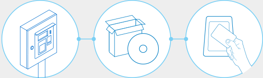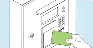 Kierowca wysiada z pojazdu, podchodzi do terminala i zbliża kartę do czytnika.